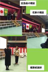 式が終わった後、「記念品の贈呈」、「花束の贈呈」、「保護者代表謝辞」が行われま...