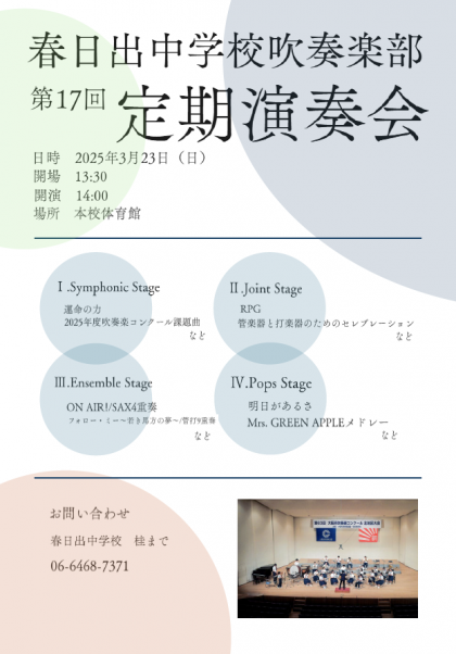 2023年3月23日(日)に本校体育館で定期演奏会を開催いたします。 3年生にと...