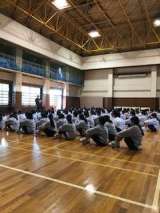 各班ごとに布団のシーツをたたんで、朝のつどいがある場合へ移動が始まりました。