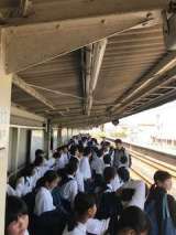 今から電車に乗ります。 鳳駅で乗り換えて、西九条駅に14時22分に着きます。学校...
