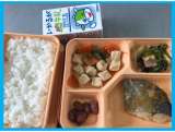 本日の給食のメニューは「鶏肉の竜田揚げ」・「あつあげとじゃがいもの煮もの」・「...