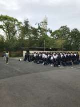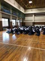 8:20には集合を完了し、服装の点検を行った後に全校集会が始まりました。