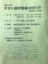 テスト前学習会(かすがてらこや)が始まります。 5月21・22日 15:50〜...