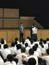 梅香・春日出・西九条3小学校の児童会のみなさんの活動内容発表風景です。事前準備も...