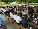 「野外炊事」の片付けを終え、退所式を行い、学年・学級写真を撮りました。現地での活...