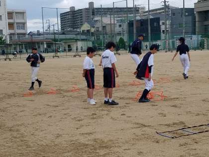 毎日ラダー、ミニハードルのトレーニングをしている成果が少しずつでてきました。1年生が入部して、今まで全員が試合に出ることできなくなり、やる気も変わったような気がします。