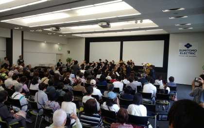 本日、5月12日(日)10時から住友電工大阪製作所において、第4回ローズフェスタがありました。そのイベントに、出演依頼があり本校吹奏楽部が演奏会を行いました。4月に新1年生が新たに部に加わり1ヶ月、顧問の先生の指導で26名の部員たちが頑張って演奏していました。会場には、立ち見の方を含め200名を超えるお客様が楽しんでいました。「ラバンバ」「美空ひばりメドレー」「クイーンメドレー」等の演奏に、来場された皆様からたくさんの温かい拍手もいただき子どもたちには良い経験をまた一つさせていただきました。ありがとうございました。