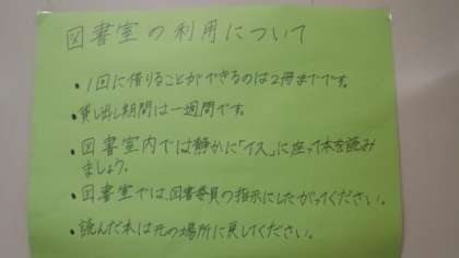 毎日、お昼休みの時間(1時5分から25分まで)に図書室を使用できるよう図書委員がお手伝いをしています。本の貸し出しも行っていますので積極的に活用してみてはいかがですか・・・