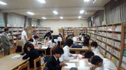 今週の木・金に中間テストが予定されていますが、図書室にて放課後学習会、テスト勉強を頑張っていました。事前に参加申し込みをした30名を超える仲間たちが学習に励んでいました。教科書や授業ノートを見直している子や学習プリントに取り掛かっている子等、様々でしたが学習を積み重ねることですぐには結果は出ないかもしれませんが必ずいつか結果につながると信じてがんばりましょう。
