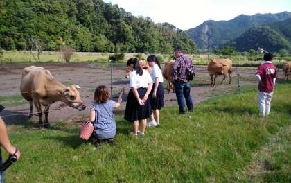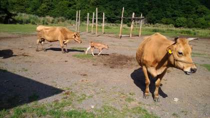 牧場に来ています。先週生まれた子牛が・・・