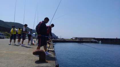 選択体験活動の釣りに挑戦です。みんなたくさん釣ってや・・・