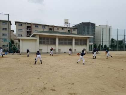 3年生が引退して、部員が新しく1人増え新体制での練習でした。今日はまずベースランニングのタイムを測定しました。秋の総体に向け、走塁を頑張っていくための1つの指標にしてくれればいいなと思います。そして今日一番課題が見つかったのはボール回しでした。送球に難がある生徒が多いため、ボール回しがなかなか終わりません。周りの人への声かけ、ワンバウンドスローなどを生かして、相手の胸にナイスボールを投げて欲しいものです。