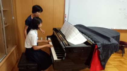 長い夏休みも半分が過ぎ、マラソンに例えるならそろそろ折り返し地点を迎えています。夏休みの宿題の進み具合はどうでしょうか、少し気になります。今日(7日)も図書室では自主学習会に参加して宿題を頑張っている仲間も何人かおります。一方、2学期に実施する合唱コンクールのピアノ伴奏の練習に頑張っている仲間もおりました。学級の代表としてクラスのために一生懸命に音楽の先生から個別指導をいただきながら取り組んでいました。本当にご苦労様です。
