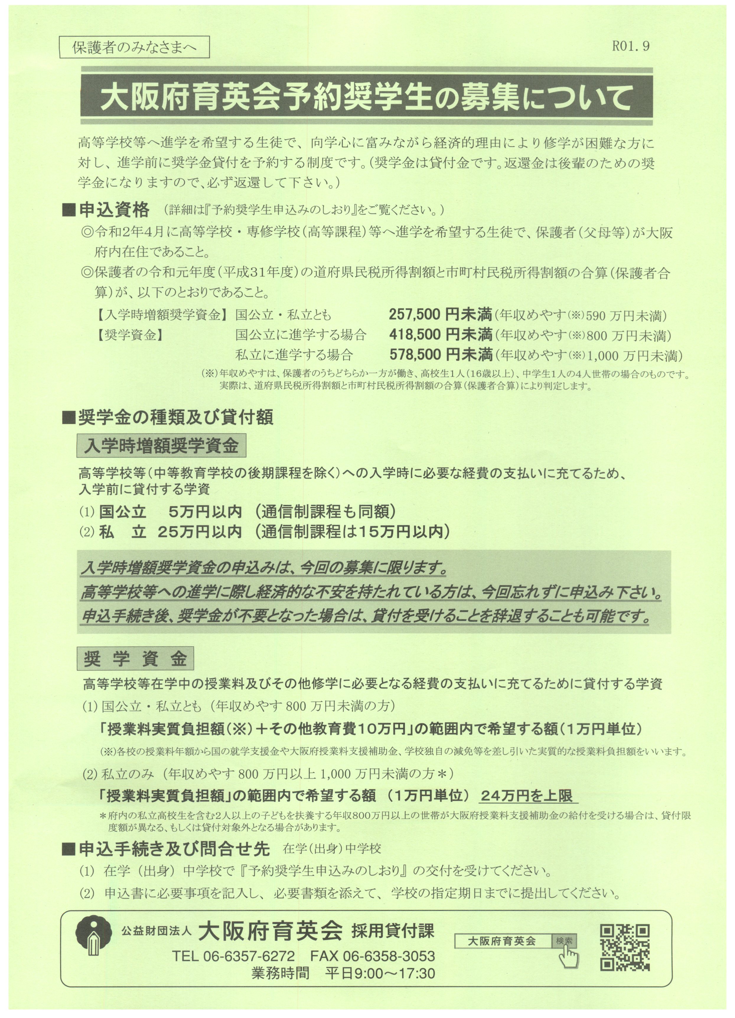 大阪府育英会予約奨学生・・・