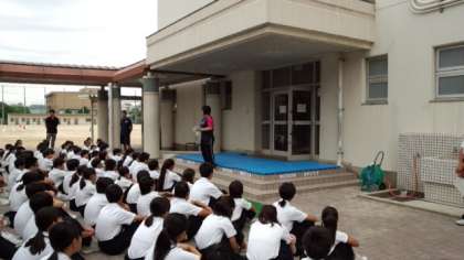 今日(18日)、定例の1年学年集会が朝の時間にありました。体育大会に向けて練習を頑張っている人がほとんどですが、最近の学校生活について担当の先生から決まりごと、マナーや規則を守って一時間一時間の授業を頑張ってほしいとお話がありました。また、学年主任の先生からは学校内のみならず、校外での生活、地域での生活についてもマナーを守って生活しましょうというお話が続きました。とくに地域での自転車の使い方については、自転車の使い方リーフレットを一人ひとりに学級で配布しますのでしっかり読んでおこうともありました。
