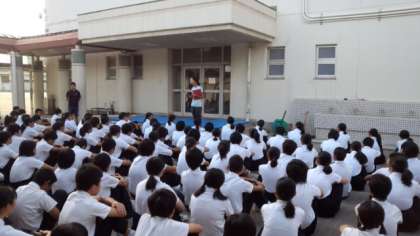 今日(19日)の定例朝の学年集会は2年生でした。担当の先生から日常の心得えについてお話がありました。日々の生活では5つの心を大切にしましょう。「はい」という素直な心、「すみません」という反省の心、「おかげさま」という謙虚な心、「私がします」という奉仕の心、「ありがとう」という感謝の心。これらの心は、相手とのコミュニケーションを円滑にする万能薬とのことでした。また、体育大会に向けて学年種目の大縄跳びや個人種目、リレー種目と練習していますが、もっと皆さん一生懸命取り組んでほしい。もっとチャレンジ精神旺盛に頑張りましょう。チャレンジの先にあるのは学びです。失敗を恐れず、途中であきらめずやりきっていきましょう。とエールを送っていました。学年主任の先生からは大縄跳びの中学2年の記録をいろいろ調べてみたが、みんななら目標50回と檄を飛ばしていました。