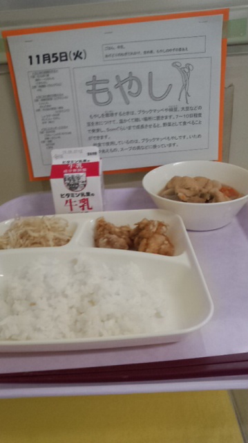 あげどりのねぎだれかけ 含め煮 もやしのゆずの香あえ ごはん 牛乳