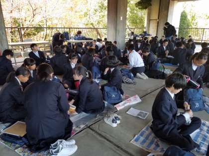 昼食中です。これからニフレル班と国立民族学博物館班交代して見学していきます。現時点では大きな事故やトラブルなく活動できています。