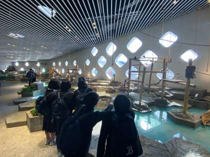 ニフレルでの様子です。ニフレルでもワークシートを一生懸命解いていました。「感性にふれる」をコンセプトに、多様性がテーマの施設になっていました。とても楽しそうに見学していました。