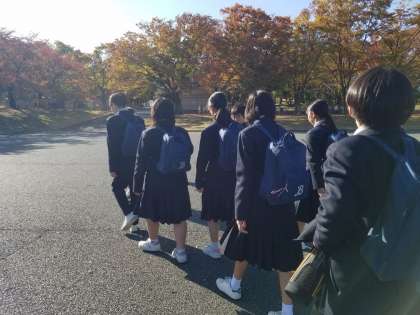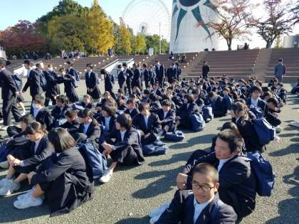 今から万博記念公園を出発します。時間は、しおりの行程通りです。