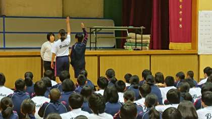6日金曜日の午後から1年生はドッヂボールをしました。ボール2つで試合をしたため、いろいろな方向からボールがとんできていました。またこのような取り組みができればいいですね。