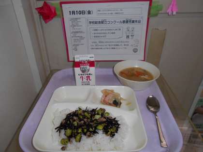 さけのさわやかレモン焼き 冬野菜のみそ汁 栄養たっぷりえだまめひじきご飯 牛乳