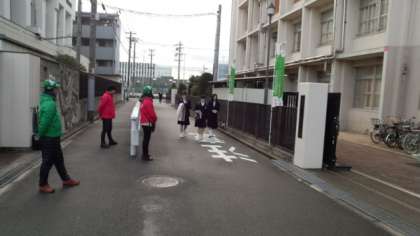 今日(18日)土曜授業日ですが、朝の8時前から地域の青少年指導員の皆さんがおはよう運動ののぼりを立て、生徒たちの登校指導に協力をしてくれていました。ありがとうございました。子どもたちの方からも積極的な朝のあいさつがたくさんありました。これからも気持ちの良いあいさつをお互いに一人ひとり心がけましょう。