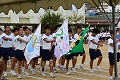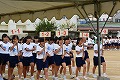 入場行進の続きです。校旗を持った生徒会長を先頭に、生徒会執行部、学年代表、男子、女子の順に1年生、2年生、3年生と入場行進を行います。男子の先頭が学級旗、女子の先頭がプラカードを持って入場します。