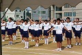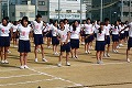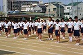 まず、全校生徒によるラジオ体操です。体育委員の代表が朝礼台で体操の模範を示し、それに合わせて全校生徒がラジオ体操を行いました。