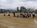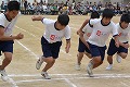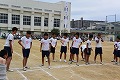 長距離走の様子です。男子はトラック5周(1000m)、女子はトラック4周(800m)を走ります。