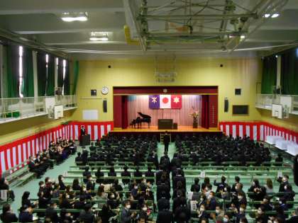 開式後の学校長式辞およびPTA会長祝辞は書面配布で行い、式時間の短縮をしました。
