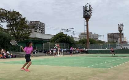 9月26日、長居庭球場でソフトテニス部の秋季総体(団体戦)が男女とも行われました。