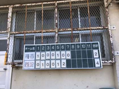 梅香は相手のエラーから好走塁で先制しますが、バッテリーミスで追い付かれてしまいます。中盤勝ち越しに成功しますが、投手のボークで再び同点。6回初めての四球からチャンスを作られ、外野のまずいプレイで逆転されました。最終回2、3塁とチャンスを作りますが、最後はセンターにいい打球が飛びましたが正面。4対2で負けてしまいました。