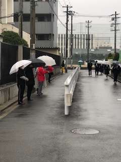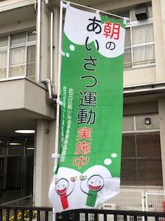 本日の土曜授業です。青少年指導員の皆様とPTAの実行委員の皆様による「朝のあいさつ運動」が行われました。前回に引き続き雨の中、本当にありがとうございました。
