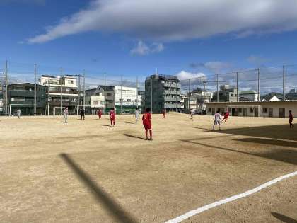 本日、大阪府サッカー協会主催のガンバカップ (2年生大会)が行われました。第4節の相手は、本庄中学校。思うようにプレーできない時間が続く中、1本の裏パスから先制点を獲得。その後左サイドからの攻撃で綺麗な追加点を得ましたが、自分たちのミスから失点。2-1で前半が終了。後半、危ないシーンもありましたが、味方とうまく連携し、追加点を2点決め、4-1で勝ちました。勝った試合でも課題はたくさん見つかりました。今後の自分たちの成長に繋げていきましょう!