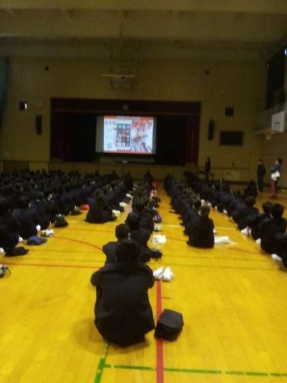 1年生は、1時間目と2時間目をKDDIの方に来ていただき、スマホ安全教室を行いました。スマホの使用によって起こるトラブルやその対処法について学習しました。