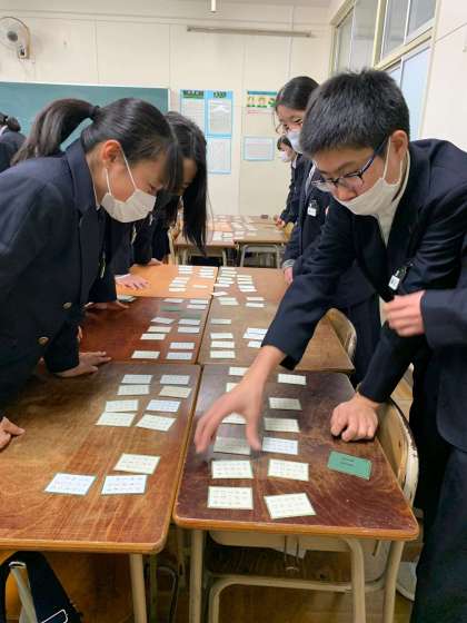 六時間目は百人一首大会に向けてのクラスでの取り組み時間でした。上の句で取れるようにしていきましょう。