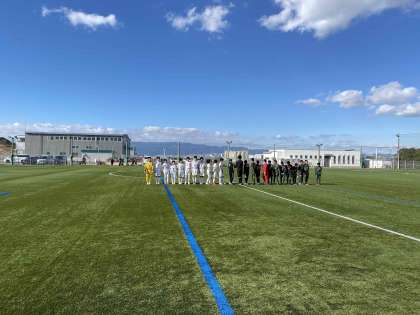 本日、大阪府サッカー協会主催のフューチャーリーグ(1年生大会)が行われました。第5節の相手は、マレッサ2nd。前半、両チームとも攻め切ることができず、0-0で後半を迎えます。後半開始早々、ミスを狙われ失点。その直後に中央の連携プレーから得点を取り返します。数分後にGKの頭上を越すシュートを決められるも、その後左サイドからの攻撃でGKの股を抜くシュートで2-2。試合終了まで攻撃は続きましたが、なかなか勝ち越し点を奪えず、2-2のまま終了しました。フューチャーリーグは残すところあと1戦。全力を出せるように万全な準備をして挑みたいですね。