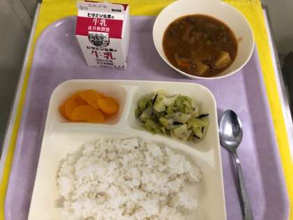 ハヤシライス、キャベツのひじきドレッシング、みかん(缶)