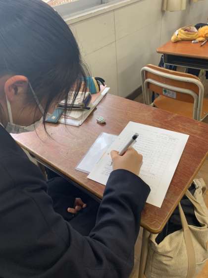 本日6時間目、2年生キャリアパスポートのまとめを行いました。来年の進路に向けて、今年度1年間の自分自身について振り返りをしました。この反省をしっかり生かしていきましょう。
