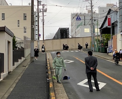 また、管理作業員さんは、朝早くから学校周辺の清掃も行ってくれています。