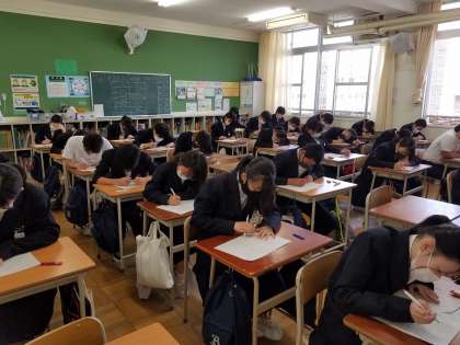3年生は、3時間目に四字熟語の漢字テスト、4時間目に英語のチェックテストを実施しました。