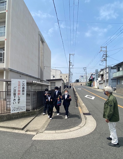 写真は、今朝の登校時の様子です。