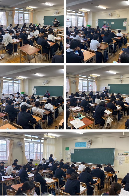 朝の全校集会では、学校長より放送で講話を行った後、1時間目は全学級でいじめをしない・許さない学校づくりの取組を行い、梅香中学校ではいじめを許さない・認めないということを確認しました。