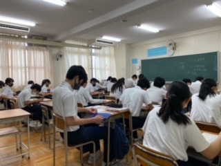大問ごとに少しずつ解き進められるように授業が展開していくので、生徒たちは集中を切らすことなく、一生懸命取り組んでいます。