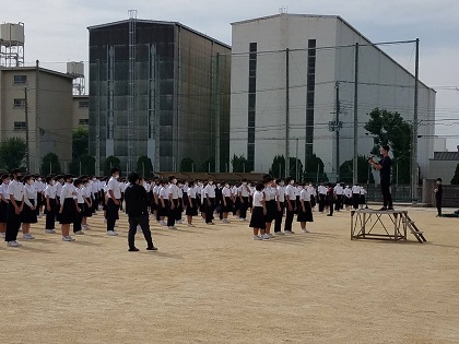 学校長からのお話の後、生活指導部長から、登下校時と、三者懇談についての諸注意が行われました。
