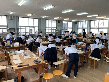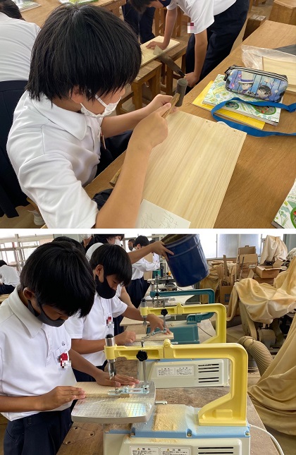 技術のものづくりは、半完成品のキットで作成することが多いのですが、本校の技術は一枚板にこだわって製作しています。