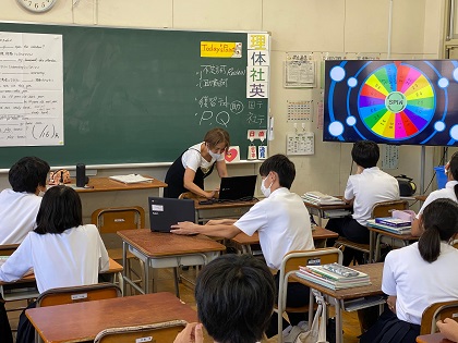 2,3枚目の写真は、2年2組の英語の授業です。