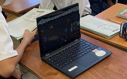 クラスで欠席した生徒のために、googleの「クラスルーム」を使い、授業を流すことを試験的に行っている様子です。