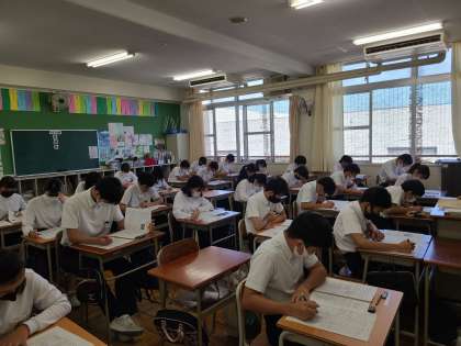 来週月曜日からB期間の時間割です。間違えないようにしてください。なお3年生が英語G-TECテストのため、全校集会が19日に延期、3年生のみ特別時間割なっています。
